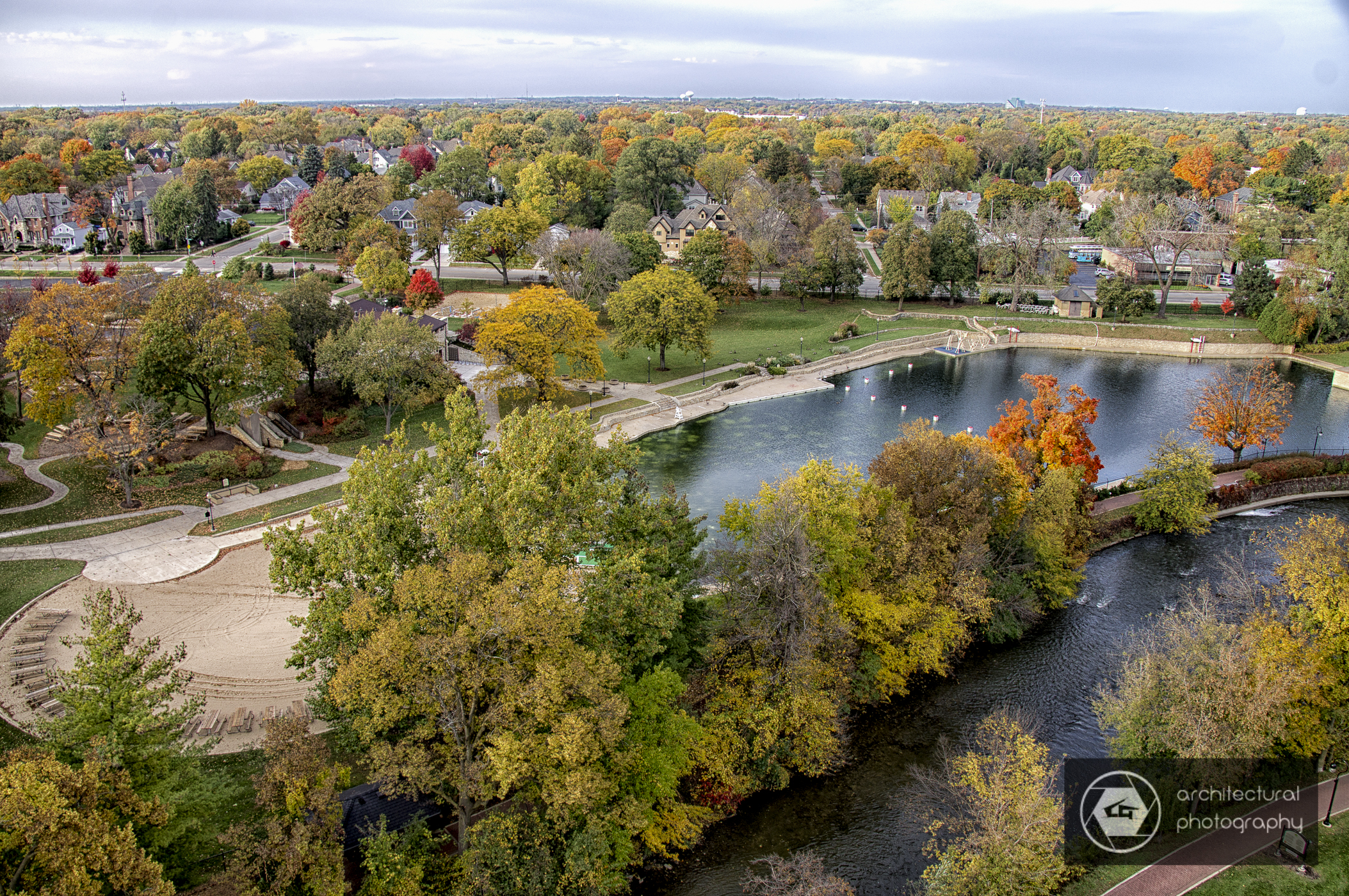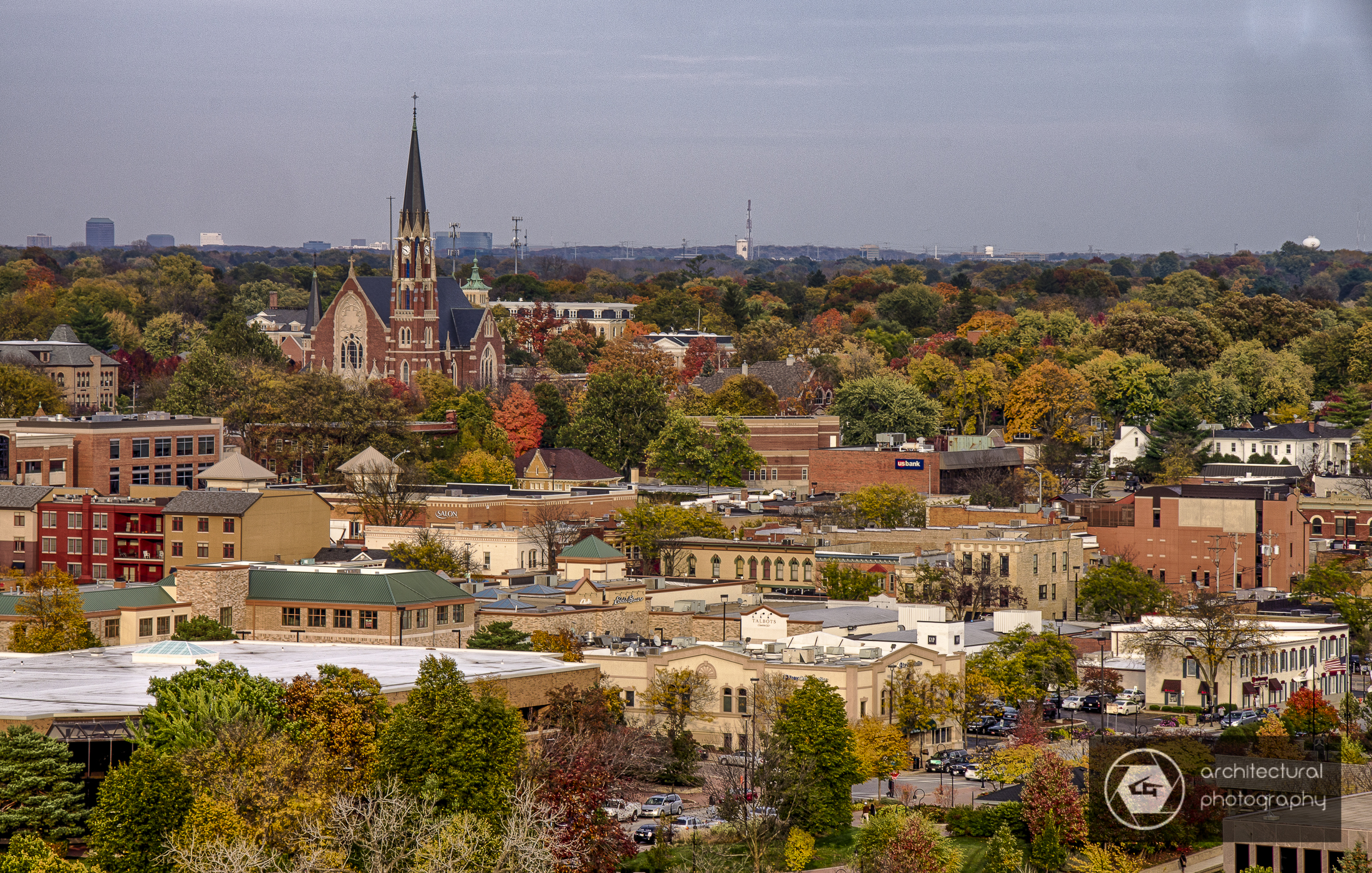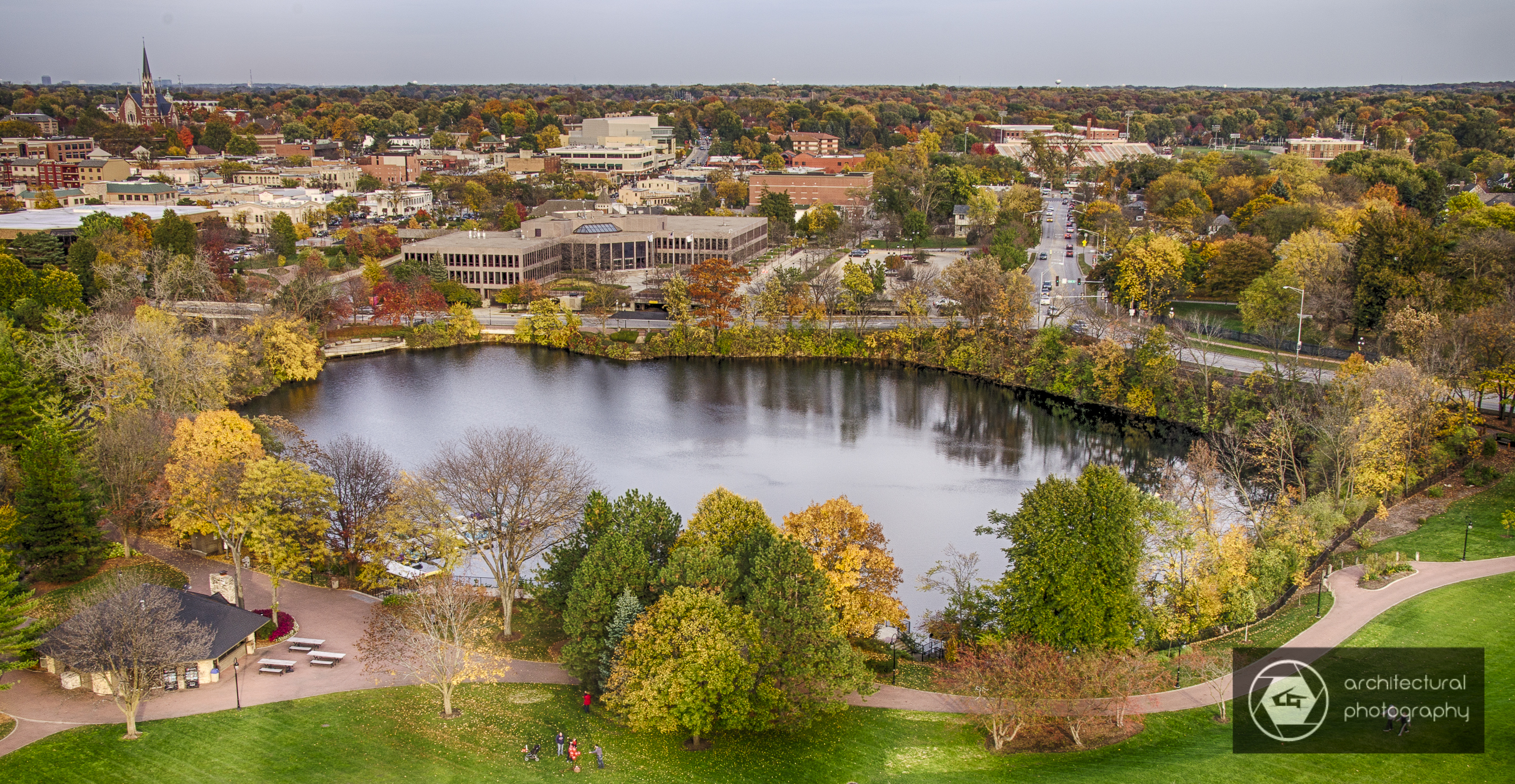 Fall color views from Moser Tower (Millennium Carillon) on the Naperville Riverwalk
