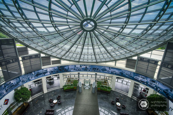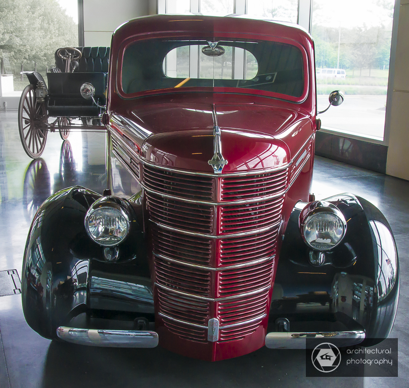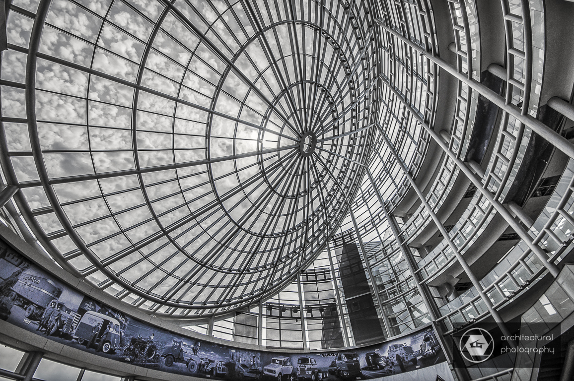 My host who works at Navistar was kind enough to get me in. I knew I wanted to capture the shadows created by the struts in the afternoon sun. The spring of 2015 was quite rainy. Finally the weather cooperated on a Sunday afternoon. On entering the lobby I was just in awe, it took me some time to figure out how to capture the grandeur of the lobby. I started with taking some panoramic shots and then focusing on closeup and abstracts. You need a really wide angle lens to capture the essence of this place. I was wishing I had a wider angle lens to fully capture the lines for some abstract art. We also took images from different floors, I loved the view from the topmost floor. After shooting architectural images we went back down to shoot photographs of the vintage vehicles that are housed on one side of the lobby. Enjoy the images.